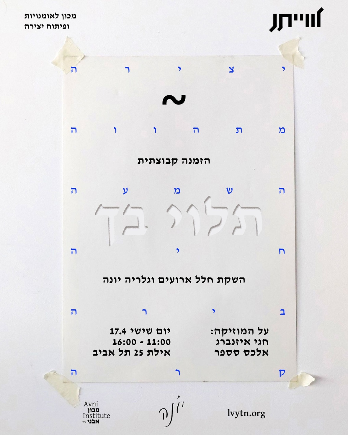 שישי 17.4 בין 11:00-16:00 ★ "לווייתן" מכון לאומניות ופיתוח יצירה משיקים את גלריית "יונה" במבנה נוסף ברחוב אילת 25