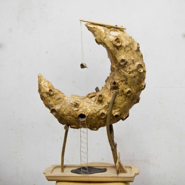 המודול: היה תרגיל שנה א'. מודול זה יחידה זהה החוזרת על עצמה הרבה פעמים, ואפשר לבנות ממנה דברים. הינו צרכים להביא חתיכות עץ (כמו שיפודים או משהו) ומהם בעזרת דבק חם לבנות מבנה העומד על הרצפה ויותר גבוה מהראש שלנו. זה נשמע בסיסי למדי אבל זה ממש פתח לי… לגלות שאני יכול לבנות דברים גדולים מדברים קטנים, אני יכול לאסוף/לייצר את חומרי הבנייה של עצמי, לגלות את היופי שבבניית הקונסטרוקציה העירומה, היא יכולה להיות כל מיני דברים: שילדית, אוורירית, קלה וחזקה, שברירית מתפרקת קורסת מייצרת צורה, מייצרת תנועה. בעיקר אהבתי את הבנייה האורגנית של הקונסטרוקציה, כמו חיה הבונה קן, או צמח שגדל: מצד אחד זה לא פעולה מכאנית מרובעת אוטומטית. מצד שני היא כן שיטתית המכילה את האקראיות בתוכה, יש בה היגיון פנימי משלה. היגיון המכיל ונובע מתוך האקראיות, כמו החיים. מה שגם יפה בקונסטרוקציה אורגנית הוא שאין יעד ידוע מראש. אני לא בונה שלד במטרה שיחזיק דבר היכסה אותו. אין סקיצות מקדימות לדבר כי אני לא יודע מה אני בונה, אלה מגלה בזמן אמת ומגיב איליו. זה אלמנט המלווה חלק נכבד מעבודותיי עד היום, כאשר כל פעם נבדק אלמנט קצת אחר. תכונות החומר מובילות את האופן בו דברים מתחברים המובילות לצורה אותה הוא מייצר.