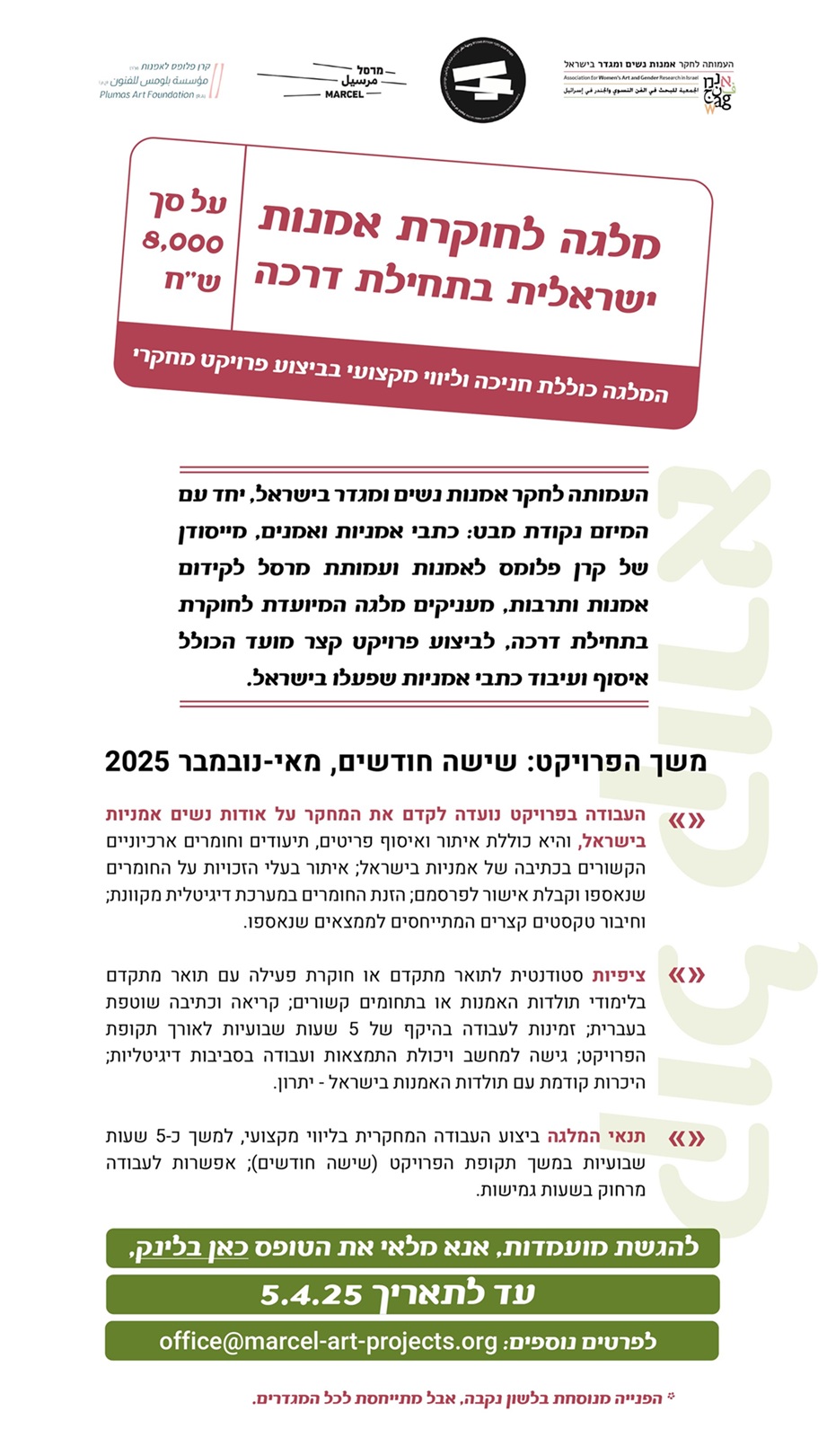 קול קורא חדש – עבור חוקרות וחוקרי אמנות ישראלית בתחילת דרכם